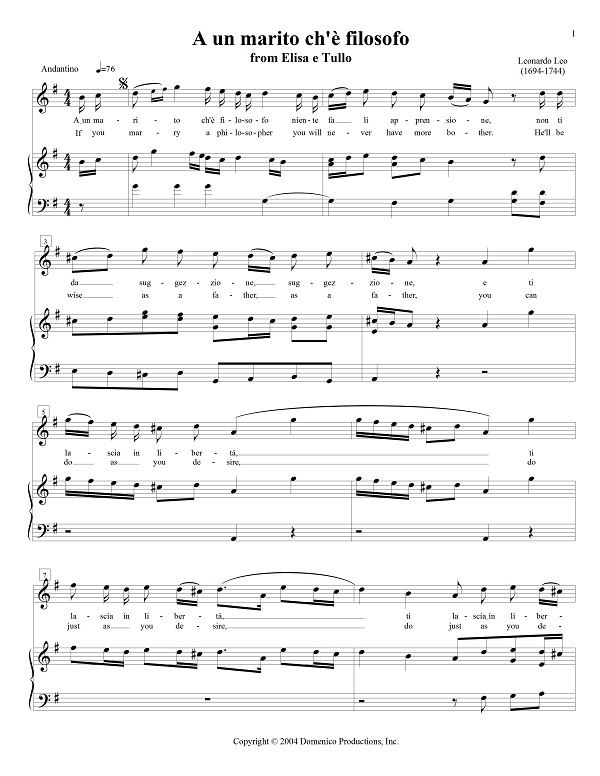 - Sheet music 4 page download for A un marito ch’e filosofo