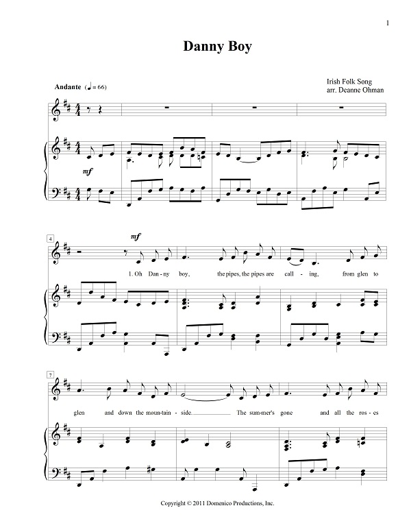 Folk Song in English Listen Irish folk song Sheet music download Arranged by Deanne Ohman For medium voice Link to MP3 piano accompaniment here Range of Song $2.50 Danny Boy Folk Song in English Danny Boy quantity Add to cart SKU: DP123 pdf Categories: English Songs, Music for Kids Tag: Irish Folk Song Description Description Listen Irish folk song Sheet music download Arranged by Deanne Ohman For medium voice Link to MP3 piano accompaniment here Range of Song You may also like… Danny Boy MP3 $2.50 Add to cart Danny Boy MP3 Folk Song in English MP3 accompaniment SKU: DP123 MP3 Category: MP3 English Folk Songs Accompaniments Tag: Irish Folk Song MP3 $2.50 Songs for Singers of All Ages Volume 2 $19.95 Add to cart Songs for Singers of All Ages Volume 2 SKU: DP22 Category: Music Books Tags: English folk songs, Music books $19.95 Related products The Coasts of High Barbary $2.50 Add to cart The Coasts of High Barbary Folk Song in English SKU: DP116 PDF Categories: English Songs, Music for Kids Tag: English Folk Song $2.50 Cindy $2.50 Add to cart Cindy Folk Song in English SKU: DP103 PDF Categories: English Songs, Music for Kids Tag: English Folk Song $2.50 Rambling Sailor $2.50 Add to cart Rambling Sailor Folk Song in English SKU: DP113 PDF Categories: English Songs, Music for Kids Tag: English Folk Song $2.50 Early One Morning $2.50 Add to cart Early One Morning Folk Song in English SKU: DP107 PDF Categories: English Songs, Music for Kids Tag: English Folk Song $2.50