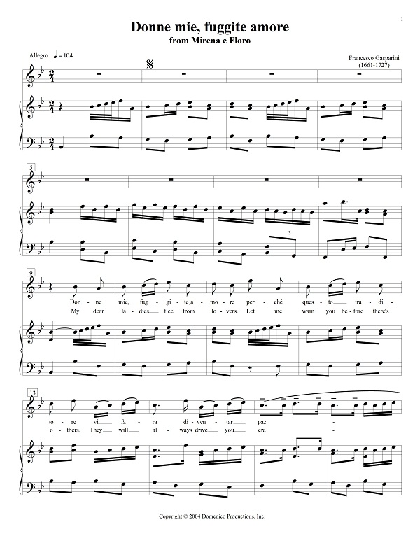 - “Donne mie, fuggite amore” aria for soprano 4 page download