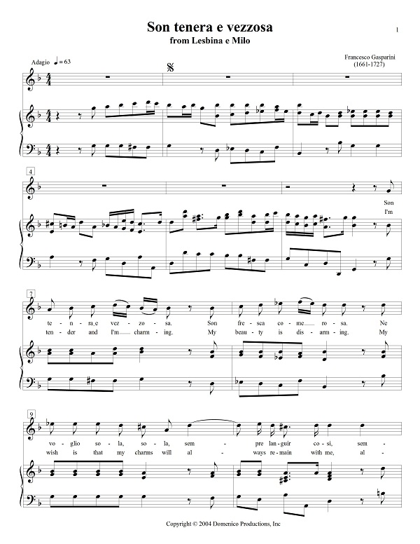 • Son tenera e vezzosa aria for soprano, 3 page download